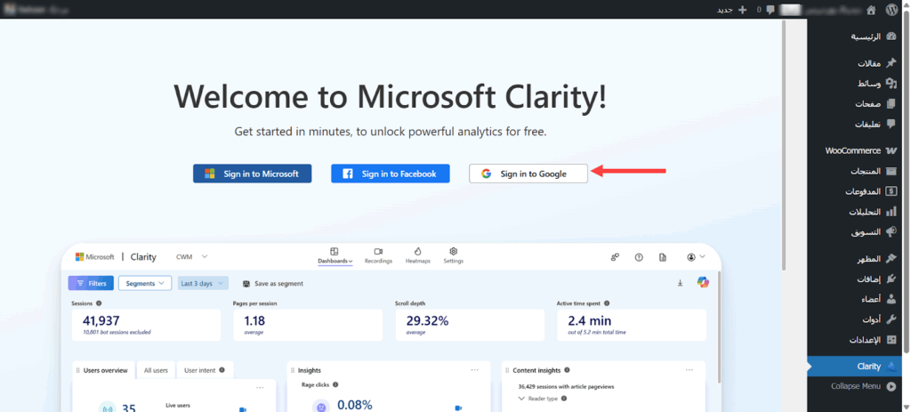 الخطوة الأولى: تثبيت إضافة Microsoft Clarity وربطها بالأداة