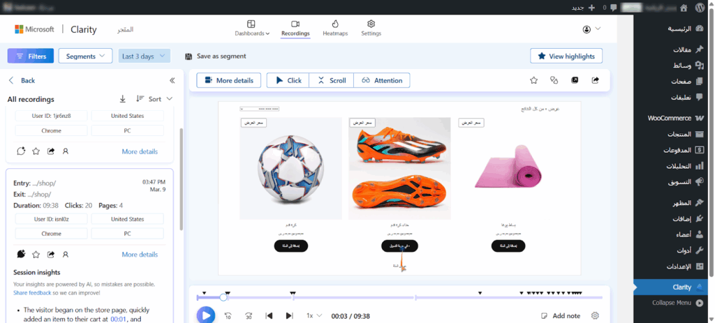 سأشرح لك فيما يلي الخطوات التي اعتمدت عليها لاكتشاف وإصلاح أخطاء متجر ووكومرس الخاص بعميلي باستخدام أداة Microsoft Clarity: