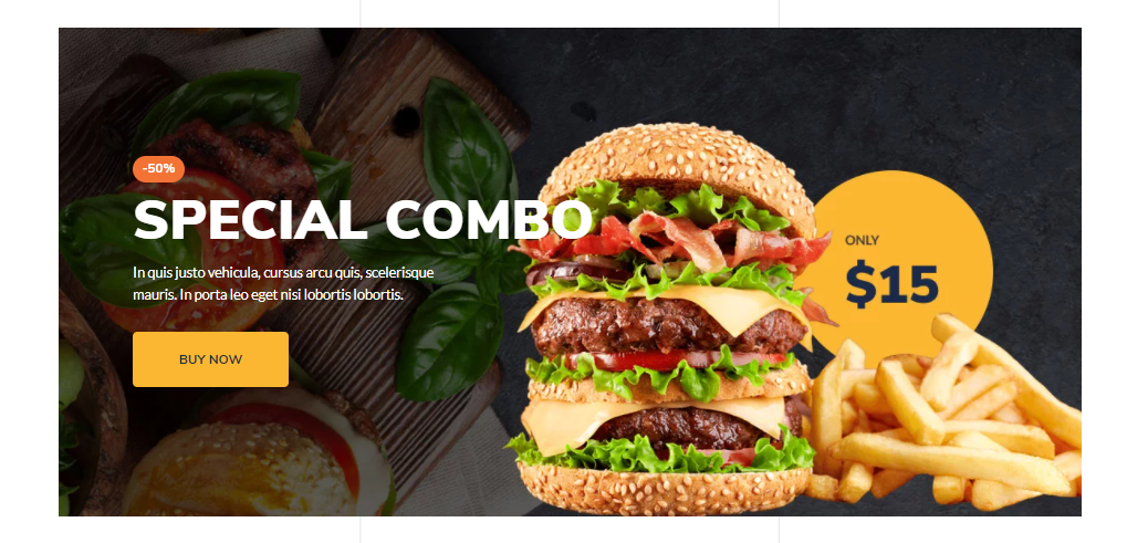 هناك بعض المطاعم تكون متخصصة في الوجبات السريعة فقط لاسيما وجبة البرجر Burger فهي من الوجبات المحببة والأكثر شعبية على مستوى العالم، وبالتالي فإن هذا القالب من أفضل قوالب توصيل الطعام وهو مناسب جداً لهذه الفئة من المطاعم والتي تهتم أيضاً بتفعيل خدمة طلب وتوصيل الطعام عبر الإنترنت.
