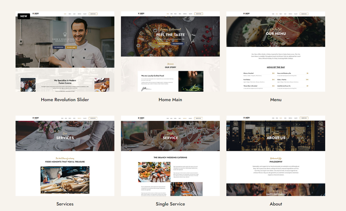 قالب Dinery هو قالب متميز لخدمة طلب وتوصيل الطعام وقائم على عناصر تصميم رائعة، كما أنه يناسب مواقع الويب الخاصة بالمطعم والمقهى والمخابز والبارات، ويشمل جميع الصفحات الداخلية الهامة مثل قائمة الطعام أو المشروبات Menu والحجز والخدمات المختلفة ومعرض الوسائط المتعددة، بالإضافة إلى بعض السمات الهامة مثل: