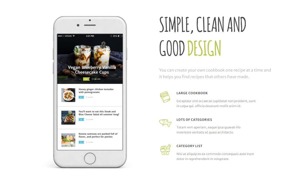 - يحتوي على نموذج ممتد لعرض أكلاتك ومنتجاتك الخاصة على صفحات متنوعة ومتميزة وكل منها تحتوي على تصميم عصري رائع.