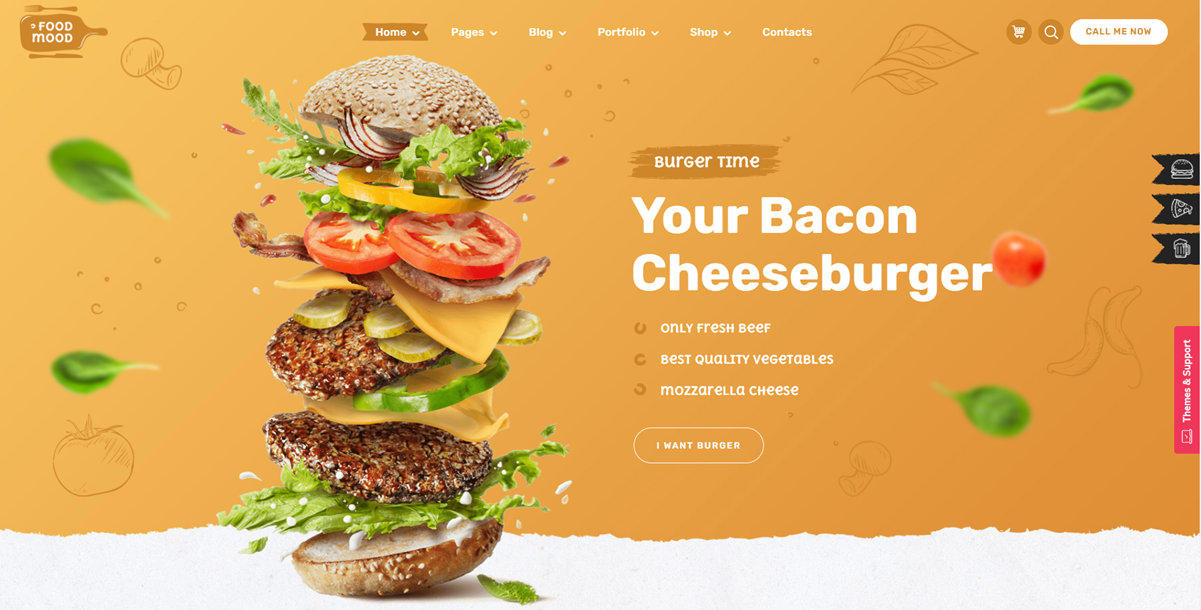 يعد استخدام هذا القالب أيضاً مثالي لمواقع الويب الخاصة بالمطاعم والتي تقدم البيتزا والسوشي والبرجر وجميع أنواع الوجبات السريعة، كما يحتوي على ثلاث تخطيطات متنوعة وجميلة، كما أنه متوافق مع متجر WooCommerce، ويدعم خاصية Elementor ونموذج الاتصال Contact Form 7، بالإضافة إلى العديد من الميزات الأخرى في القوالب السابقة.