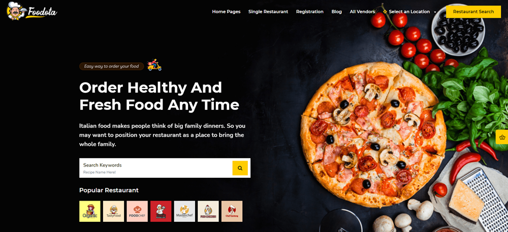تستطيع من خلال هذا القالب إنشاء موقع لخدمة توصيل الطعام الخاصة بمطعمك، ويعد هذا القالب تصميماً مثالياً للمطاعم الخاصة بالوجبات السريعة والبيتزا والبرجر والمأكولات البحرية وغيرها، كما يحتوي على تصميمات رائعة تجعله من أفضل القوالب المندرجة تحت فئة Food Delivery WordPress themes مثل تصميمات الصفحات الرئيسية والداخلية التي تمكنك من إنشاء موقع جذاب ويرضي جميع الزوار، ومن أهم ميزات هذا القالب ما يلي: