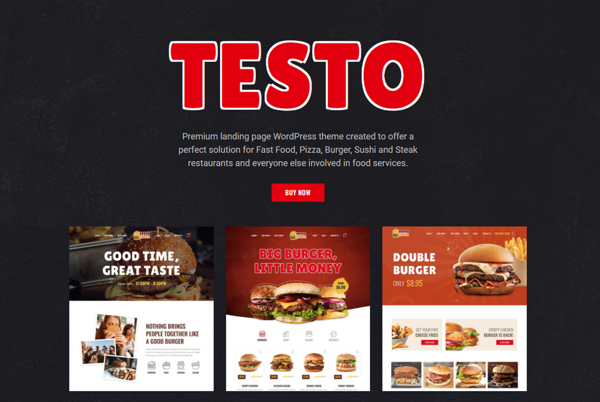 قالب Testo هو قالب حديث ومرن وقد تم تصميمه لمواقع المطاعم الخاصة بالبرجر والبيتزا والسوشي والوجبات السريعة بالإضافة إلى قسم المقهى وخدمة توصيل الطعام، وسوف يساعدك هذا القالب في إعداد موقعك الإلكتروني بكل سهولة ويسر كما أنه يحتوي على العديد من السمات والأدوات التي تجعلك تفضل استخدام هذا القالب، ومن أهم هذه السمات والأدوات ما يلي: