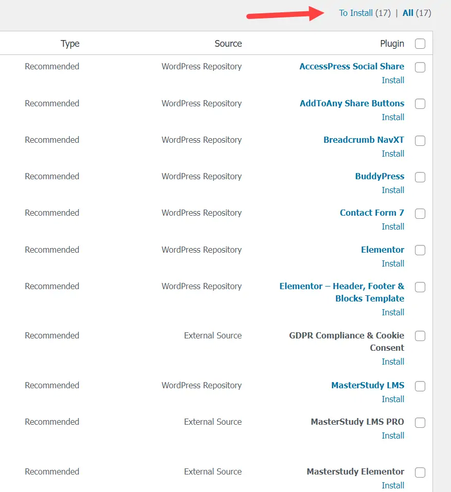 الصورة السابقة مثلا فيها الكثير من الإضافات المجانية التي يمكنك تنصيبها من الووردبريس (WordPress Repository) والقليل من الإضافات فقط من مصادر خارجية بعضها هام والآخر قد يكون غير هام.