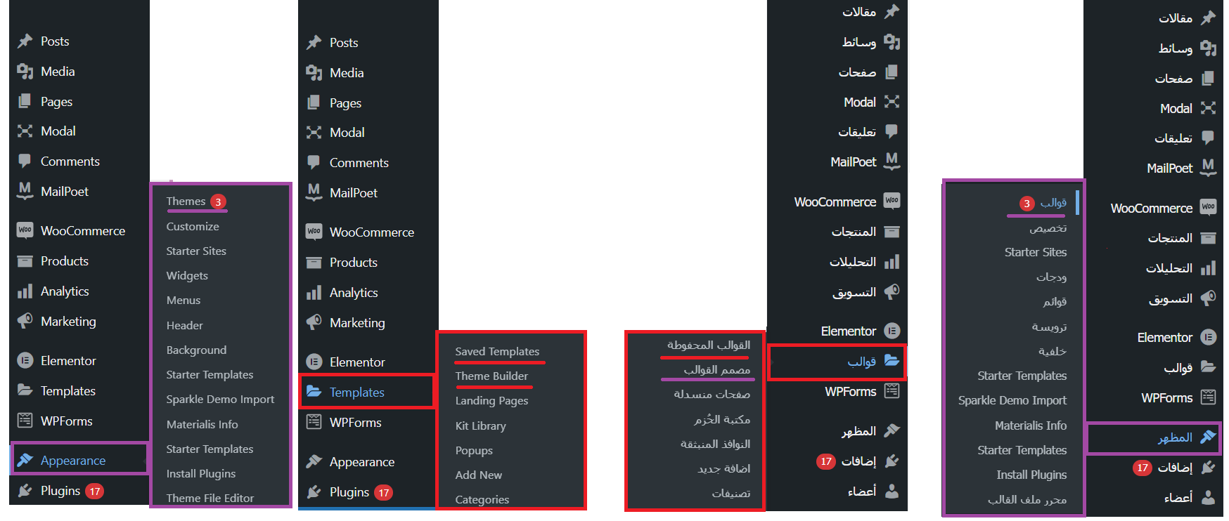 إذاً ما أقصده بسؤالي ما الفرق بين Template و Theme في ووردبريس فكلا المصطلحين تم ترجمتهما بكلمة "قوالب" في لوحة التحكم الخاصة بأدمن الموقع! وهذا من شأنه أن يربك المستخدم ويدفعه للتساؤل عن الفرق بين القائمتين.
