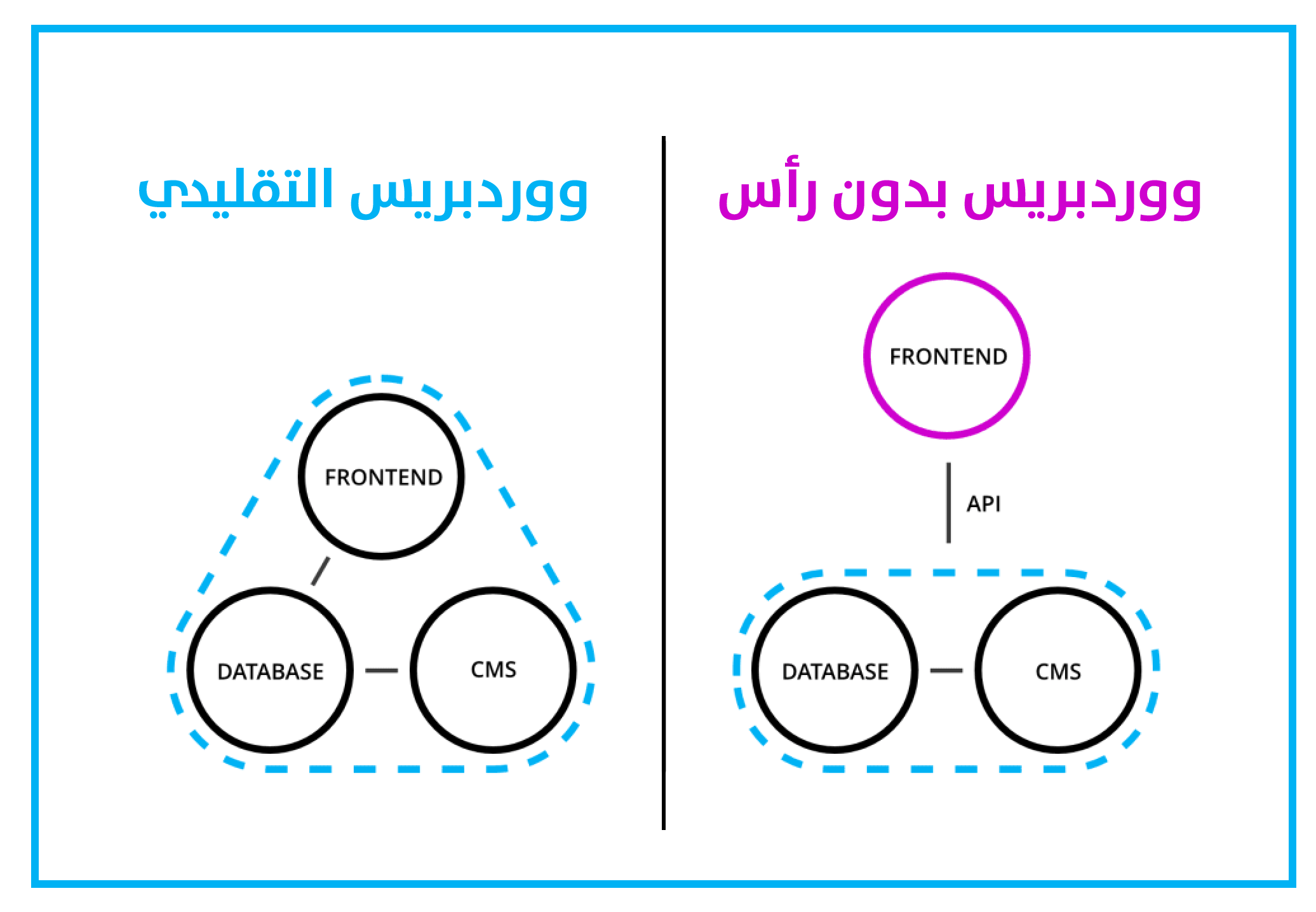 هذا يجعل ووردبريس سهل الاستخدام لكنه من جهة أخرى يجعله محدود في تصاميم وقوالب معينة..ولحل هذه المحدودية تم إيجاد مفهوم ووردبريس المقطوع الرأس أو ووردبريس بدون رأس (Headless WordPress)