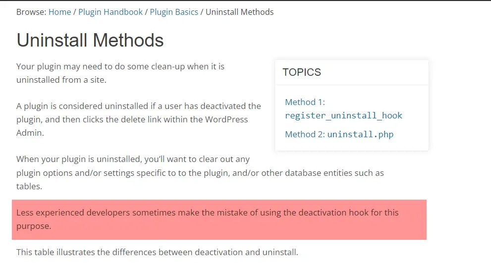 وفقًا [سجل الدخول لترى الرابط]، المفترض أن يتم حذف الإعدادات والجداول التي أنشأتها الإضافة بمجرد حذفها من الموقع. غير أن هناك بعض المبرمجين يُخطئون (أو ربما يتعمدون) استخدام خاصية إلغاء التفعيل بدل من خاصية الحذف.