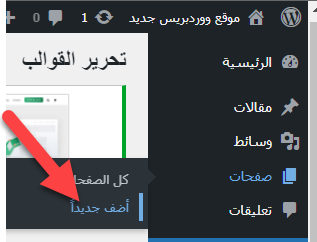 يتيح لك الووردبريس بشكل افتراضي امكانية انشاء الصفحات والمقالات بطريقة سهلة تماما بنقرة زر واحدة على (أضف جديد):