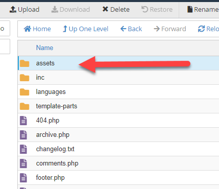 اذا قمت بالدخول الى مدير ملفات الموقع الخاص بك على الاستضافة وتحديد بالدخول الى ملف احد القوالب المنصبة على الموقع ستجد ان كل قوالب يحتوي على مجموعة من الملفات الإضافية مثل مجلد Assets والذي يختلف من قالب الى اخر وتختلف عدد الملفات داخله من قالب الى أخر:
