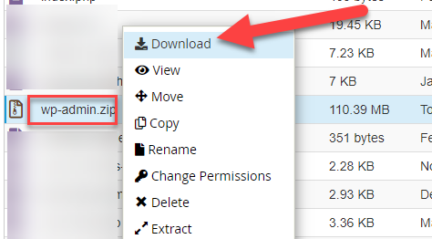 بعد إنشاء النسخة الاحتياطية للموقع، تبدأ الخطوة الأولى وهي تنزيل نسخة من قواعد بيانات الموقع، وكذلك نسخة من ملفات الووردبريس من داخل مدير الملفات.