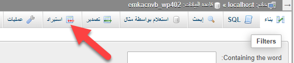 بعد إنشاء قاعدة البيانات الجديدة، ثم بالنقر على زر الاستيراد، حتى تقوم برفع النسخة الخاصة بقاعدة البيانات، والتي تم تنزيلها في الخطوة الأولى: