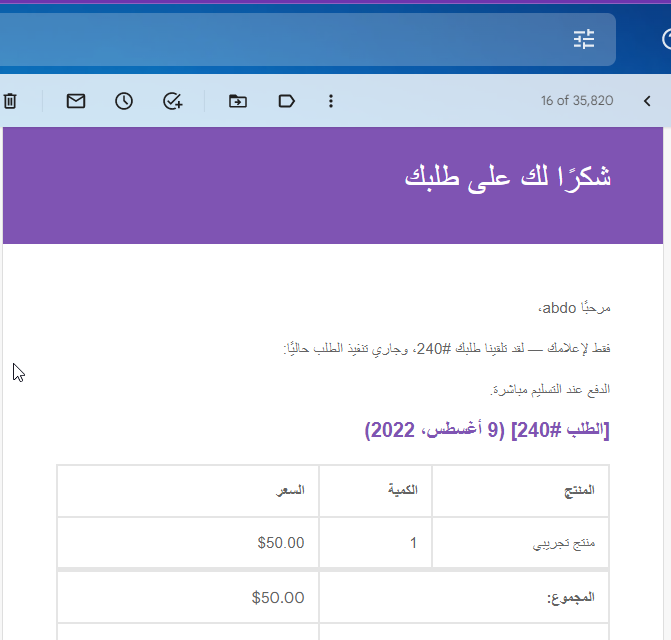 كتابة وتخصيص رسالة شكر مخصصة لعملاء المتجر دون الاعتماد على الرسائل الروتينية الافتراضية في ووكومرس.