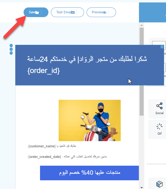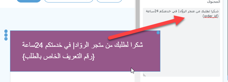 يمكنك النقر على أي نص أو أي جزء في النصف الثاني الذي يحتوي على معاينة لشكل رسالة البريد الإلكتروني وسوف يظهر لك صندوق تحرير النص الخاص بها لتكتب داخله النص الذي ترغب به بدلا من النص الافتراضي: