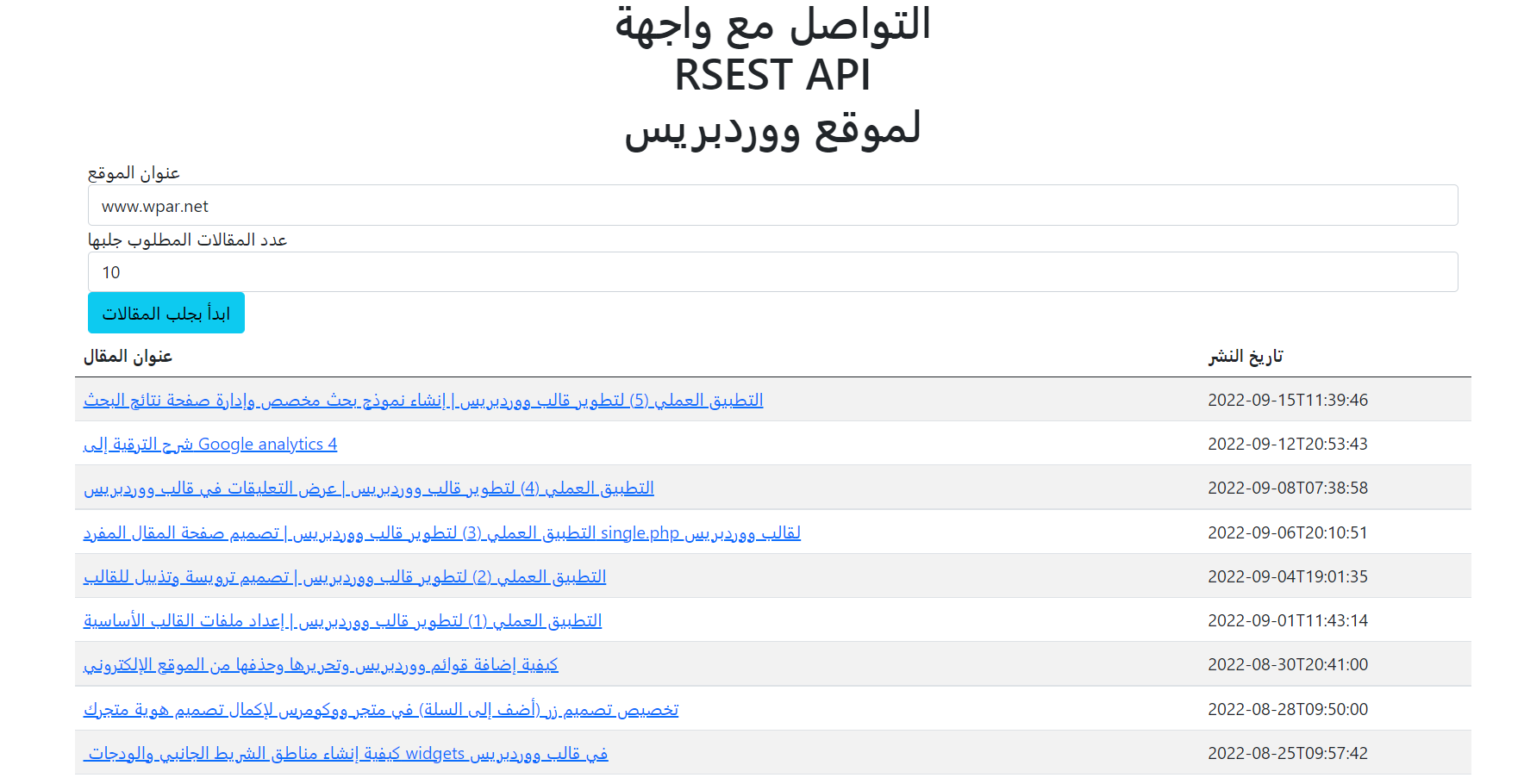 على سبيل المثال البرنامج التالي هو عبارة عن [سجل الدخول لترى الرابط] مهمته جلب كافة مقالات أي موقع ووردبريس تريده من خلال التواصل مع واجهة REST API لهذا الموقع