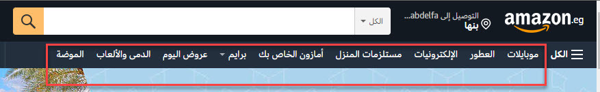 من المهم إظهار قائمة تنقّل واضحة وسهلة في أعلى المتجر، بحيث يستطيع الزائر من خلالها تصفح الأقسام التي المناسبة له، واليك مثال من أحد المتاجر الشهيرة، حيث يتم عرض الأقسام والتصنيفات الرئيسية بصورة مختصرة ومرتبة في أعلى المتجر: