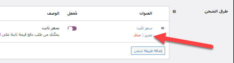 بعد ذلك نقوم بالدخول إلى تبويب تحرير طريقة الشحن: