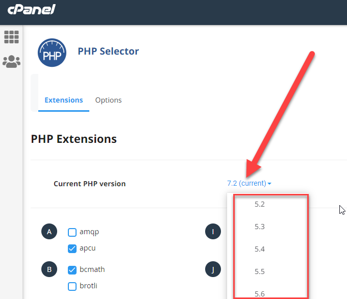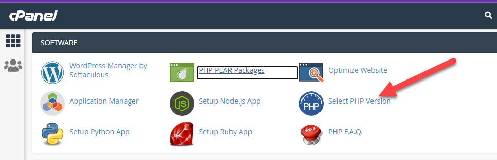 وسوف أخبرك بفكرة تحديث ال php من داخل لوحة التحكم Cpanel، قم بالدخول إلى لوحكم السيرفر ثم ادخل على تبويب select php version: