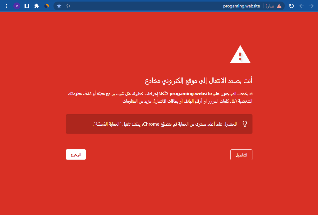 اعتقد ان سبب من اعلانات سيئ أو قوالب أو اضافات يحتوي على ملفات ضارة، ويقوم المتصفح بتحذيرك