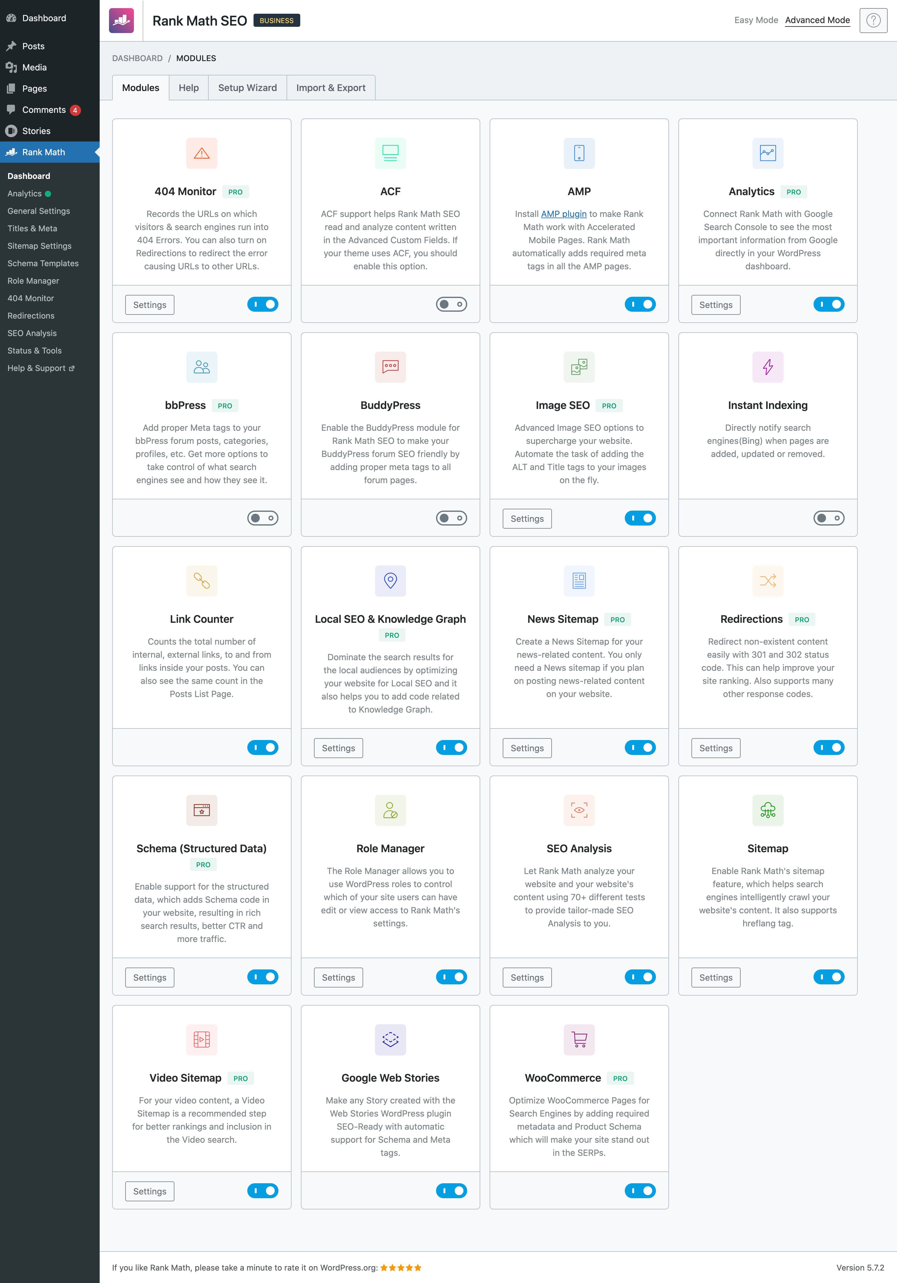 ولكن إضافة Rank Math توفر أكثر من واجهة مستخدم وهم واجهة متقدمة وأخرى أساسية، الواجهة المتقدمة تتناسب مع الخبراء في مجال تحسين محركات البحث حيث يسمح لهم بالتحكم في كافة إعدادات الفحص والتحليل، أما الواجهة الأساسية يتم إجراء كل شيء بشكل تلقائي طبقًا للإعدادات التقليدية.