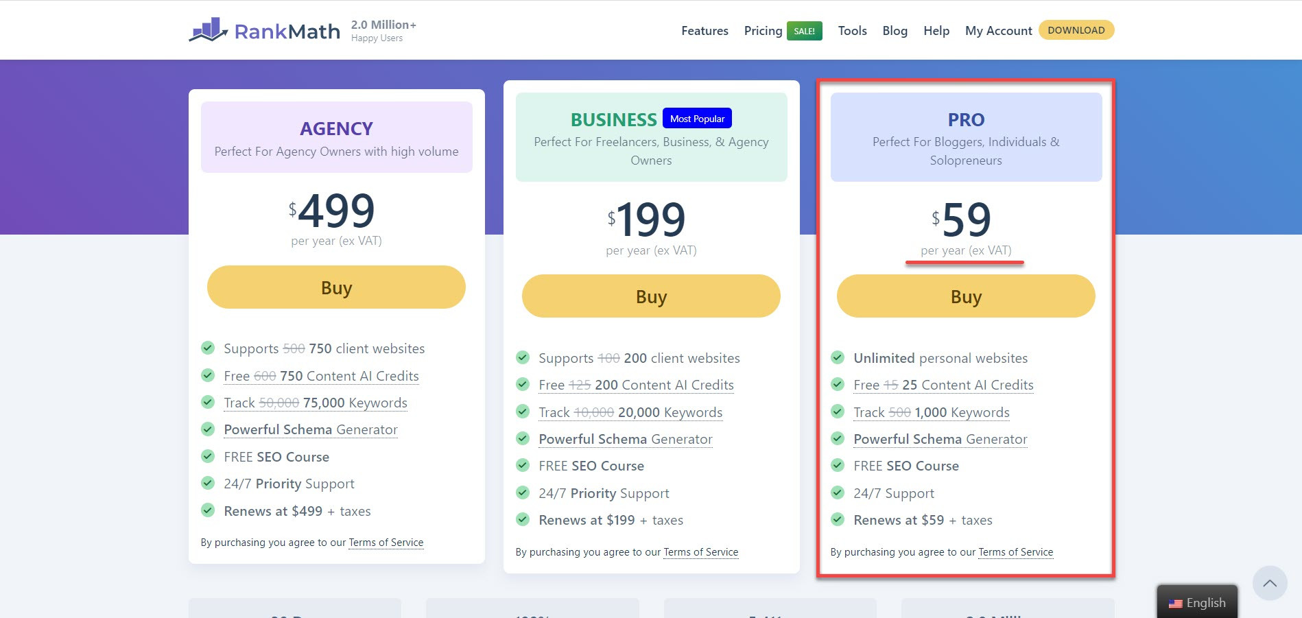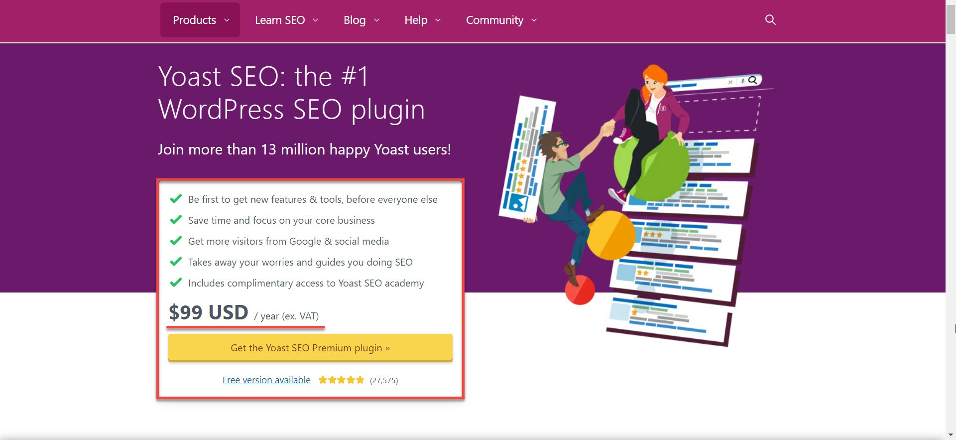 لذلك بالنسبة للتسعير ستجد أن إضافة Rank Math تتفوق بشكل ملحوظ عن إضافة Yoast SEO من إجمالي التكلفة السنوية بفارق 40 % مع التفوق أيضًا في الخصائص المتاحة في الباقة الأساسية.