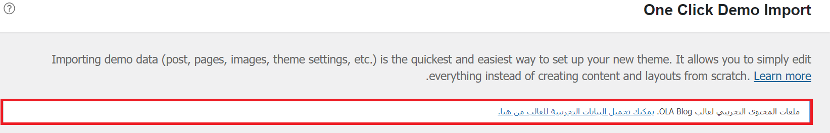 تضمين ميزة استيراد محتوى تجريبي في قالب ووردبريس برمجيًا