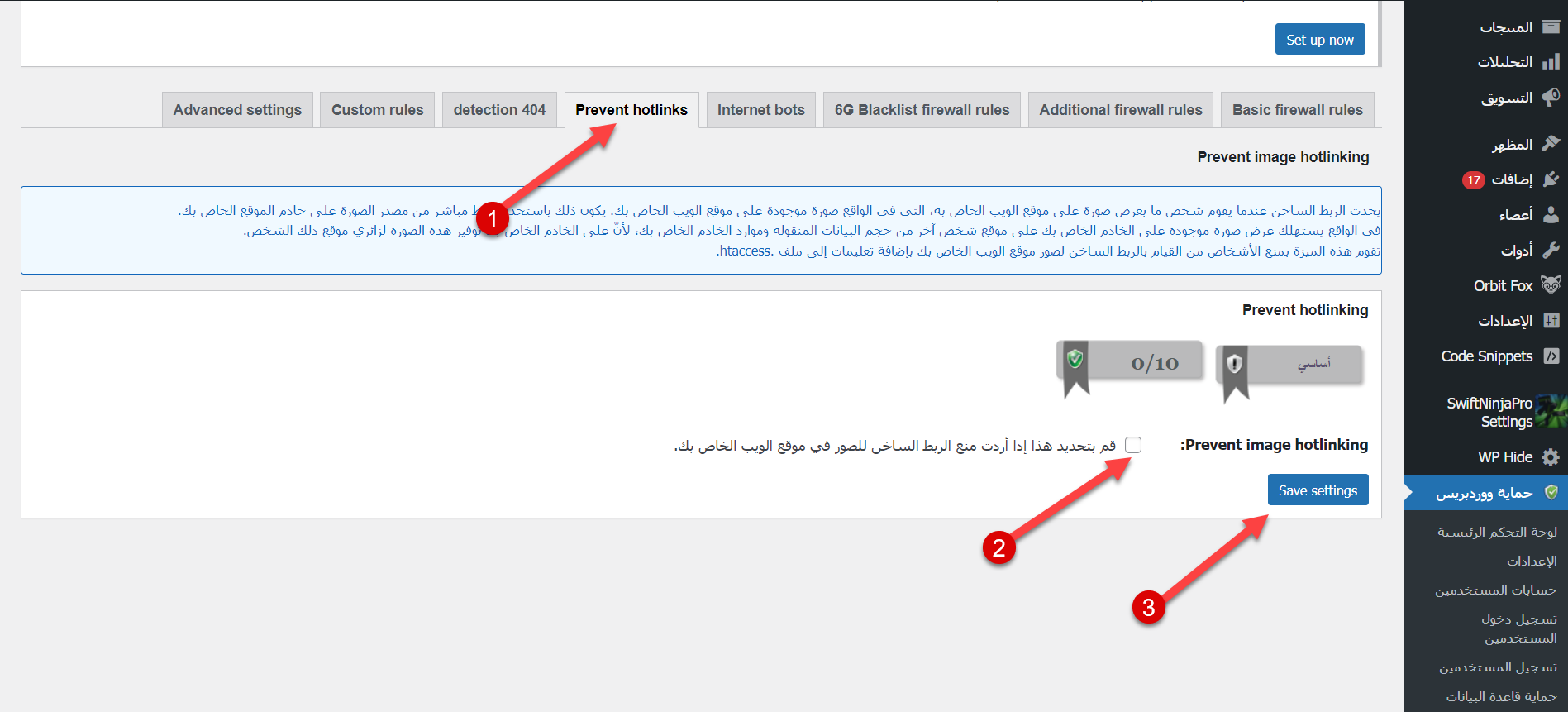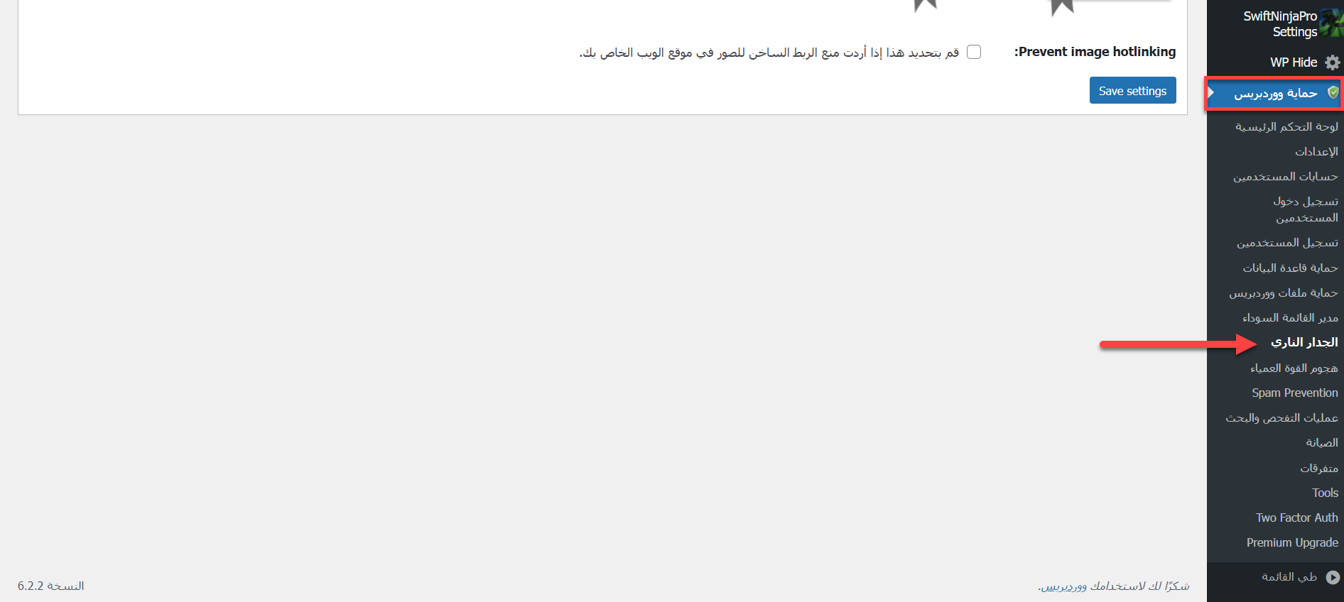 الخطوة السادسة : تعطيل خاصية Hotlinking من الووردبريس