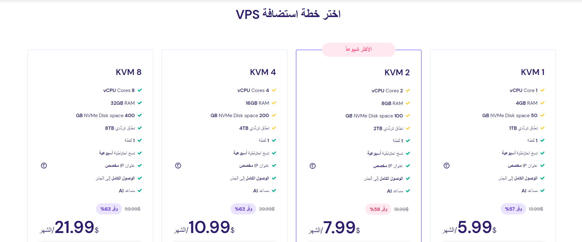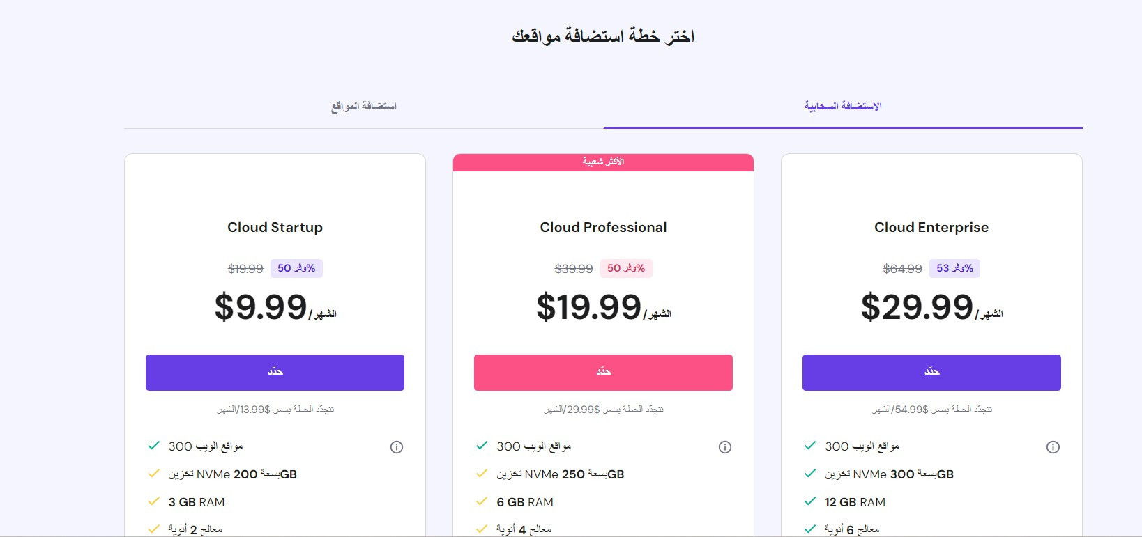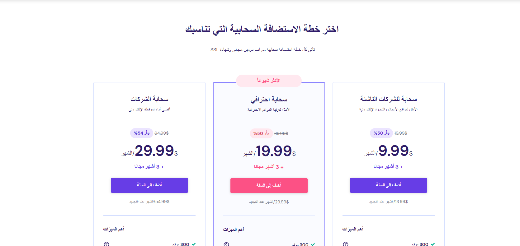 soltan أهلًا أخي نحن نوصي بشركات التي تعتمد على الاستضافات السحابية والمحاسبة مقابل الاستهلاك بشكل عام ونعطي توصية بديجتال أوشن فقط لأن البعض يسألنا عن أسماء شركات بعينها، وإلا فهناك شركات أخرى نوصي بها أيضًا مثل: , AWS, Google clouds, linode, vultr, cloudways
