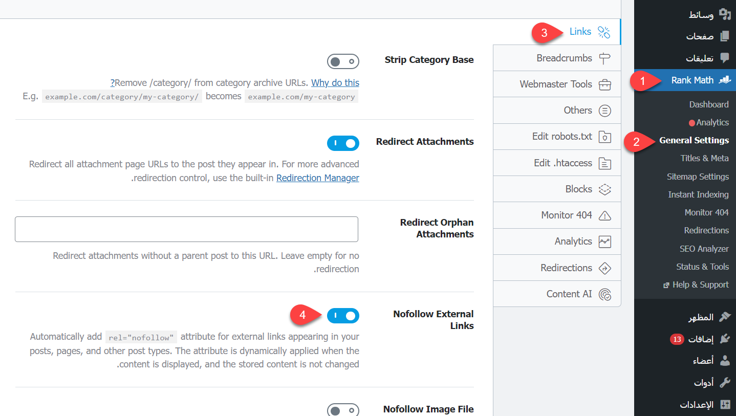 ستجد الإضافة الجديدة بعنوان "Custom External Links". قم بتنشيطها.