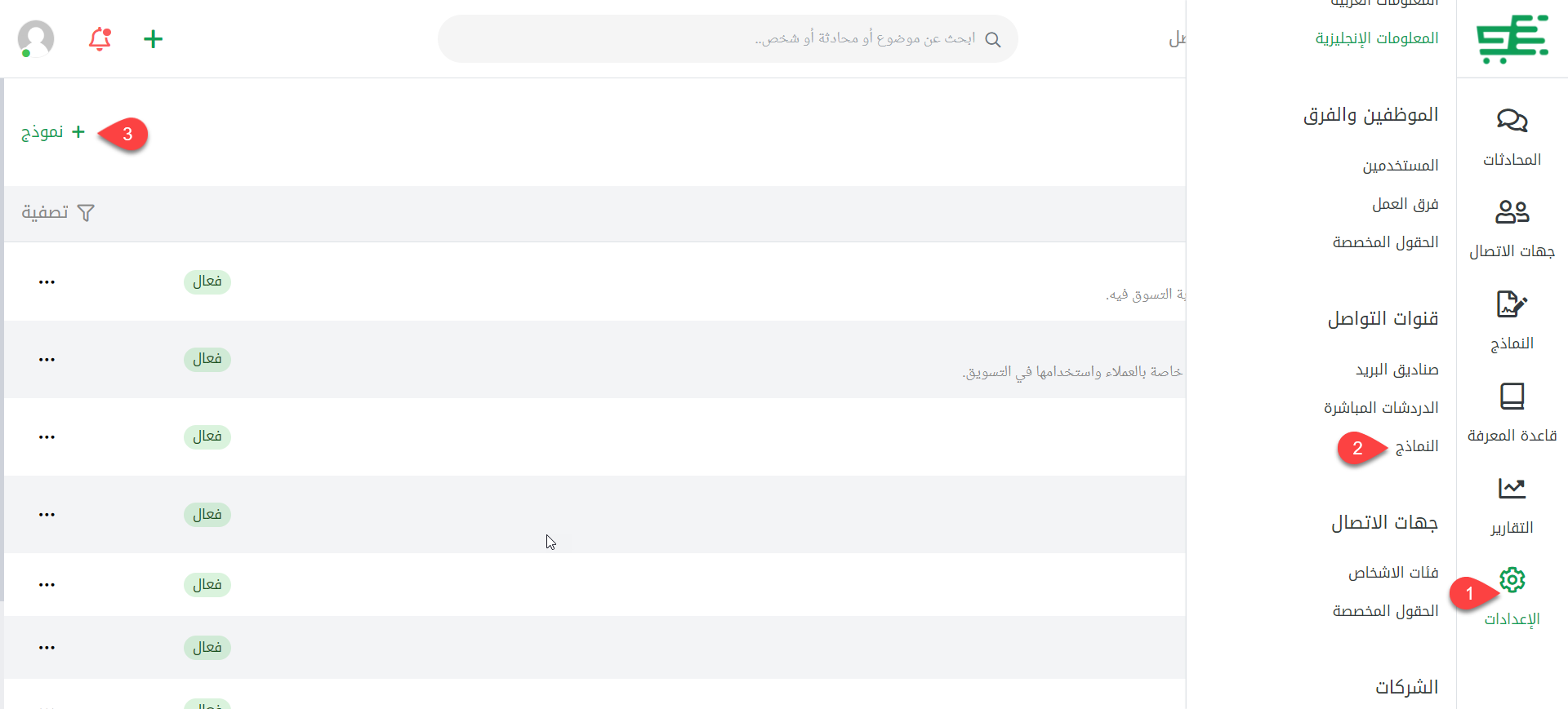 توجه الآن إلى صفحة إنشاء نموذج من خلال الإعدادات --> النماذج ثم النقر على زر (+ نموذج).