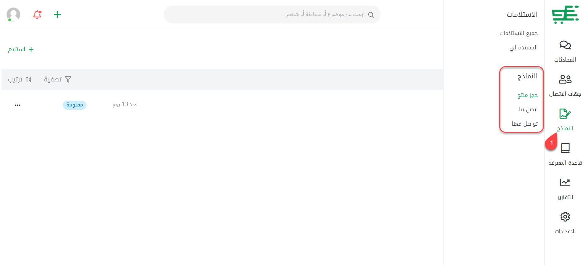 وستتلقى المعلومات في مركز المساعدة في زيتون في قسم الاستلامات، حيث يمكنك الانتقال إليه من خلال النقر على (النماذج) في القائمة الجانبية، ثم النقر على اسم النموذج للانتقال إلى الاستلامات الخاصة به.