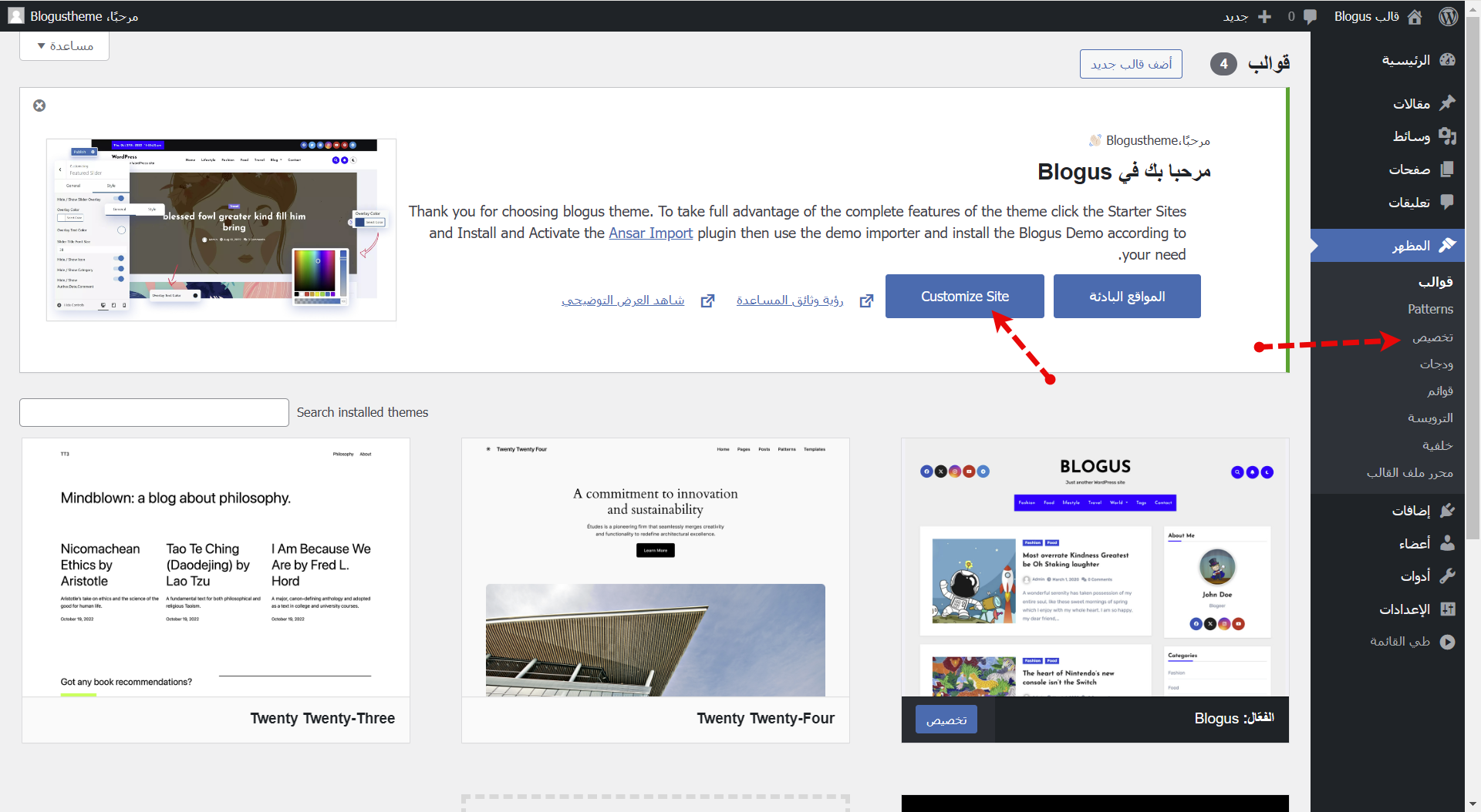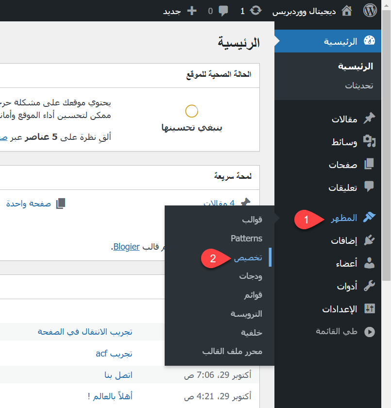 إذا نعم، اعلم أخي أن لكل قالب ووردبريس إعدادات. القالب نفسه هو من يُحدد المكان الذي يمكنك منه التحكم في هذه الإعدادات.