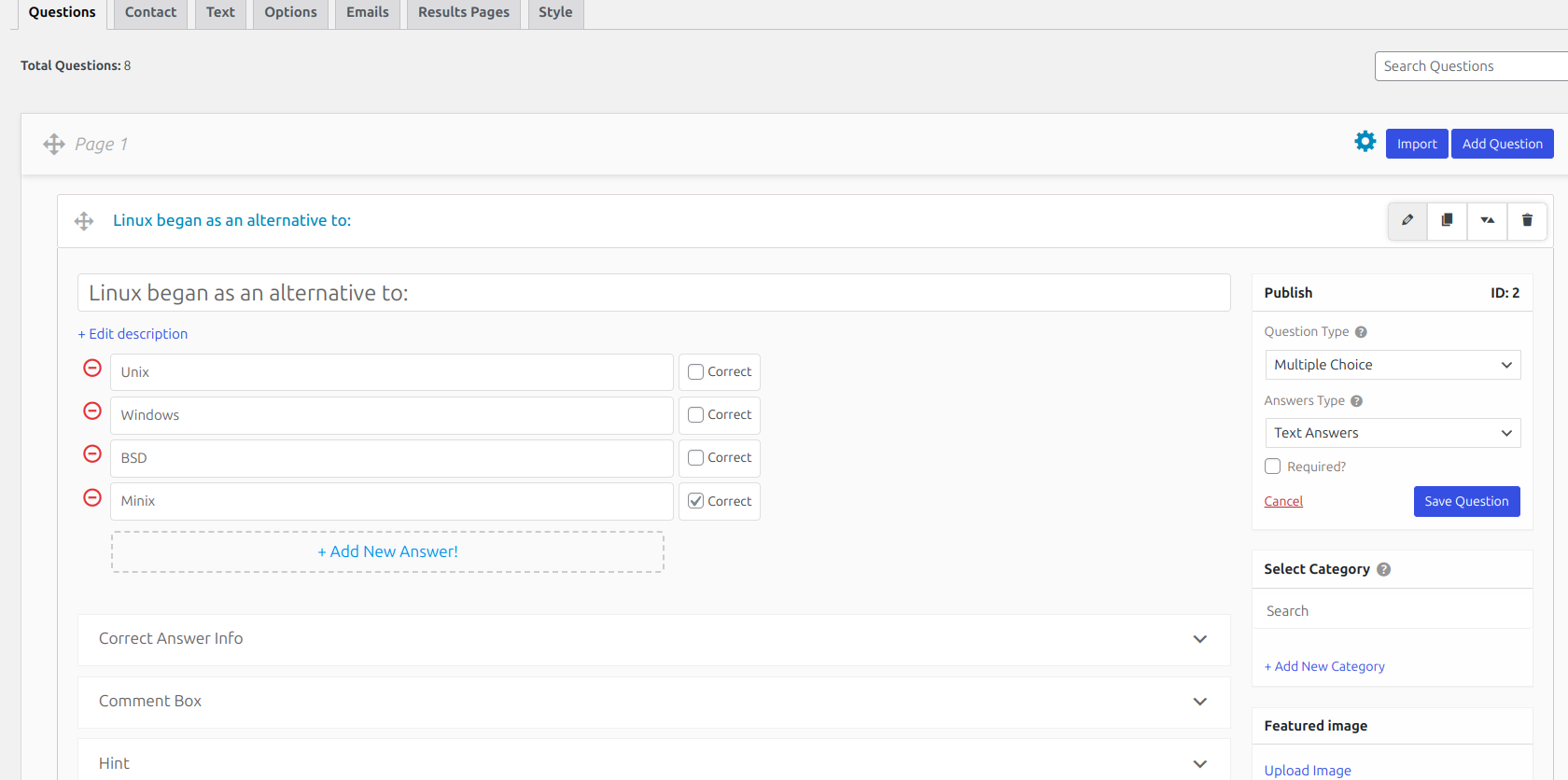 لديّ على أحد مواقعي قسم مخصص ببعض الأسئلة والأجوبة التدريبية التي يمكن للقارئ التدرّب عليها لقياس خبرته في المجال. وقد عملتُها بسهولة باستخدام ووردبريس.