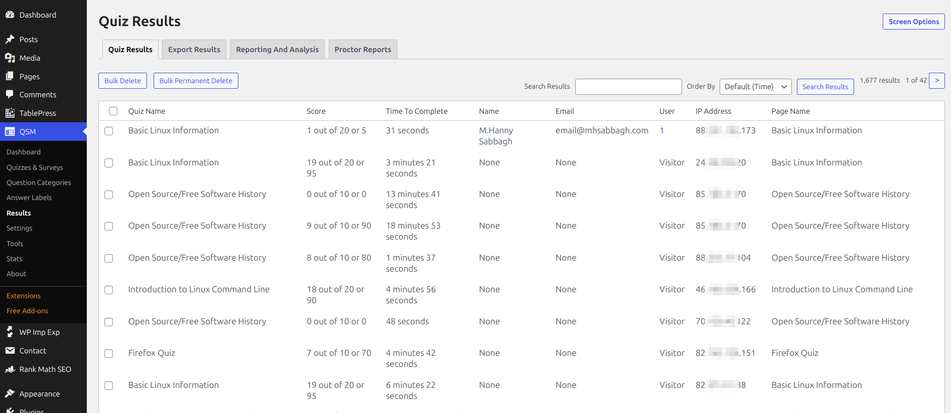 يمكنك أيضًا رؤية نتائج الكويزات ومن يخوضها على موقعك، بالإضافة إلى عنوان الـIP الخاص بهم: