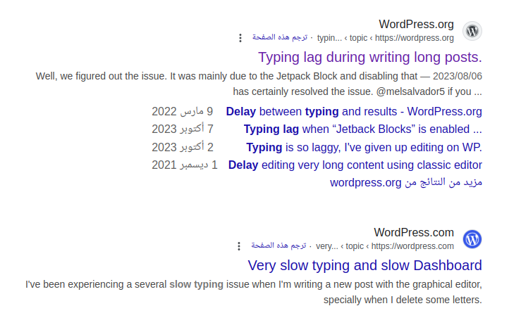 قد لا تكون هذه مشكلة لأغلب الناس لكن كانت هذه مشكلة عصيبة تصرفني عن كتابة المقالات مباشرةً على محرر ووردبريس لسنوات؛ لأنها تصيبني بالعصبية وأنا أنتظر هذه الحروف لتظهر على الشاشة بينما أنا أكبسها في نفس اللحظة. 🤭 فكنتُ أستعملُ حلًا معقدًا يعتمد على خدمة Wordable ثم تصدير المقالات من مستندات جوجل إلى ووردبريس عند الانتهاء منها.
