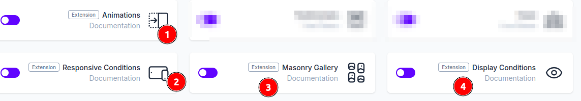 إن نزلتَ إلى آخر صفحة الblocks في إعدادات الإضافة فستجد بعض الامتدادات extensions التي يمكنك تفعيلها، وأنصحك بتفعيلها؛ فهي خيارات إضافية لجميع الوحدات للتحكم بطريقة عرضها وشكلها: