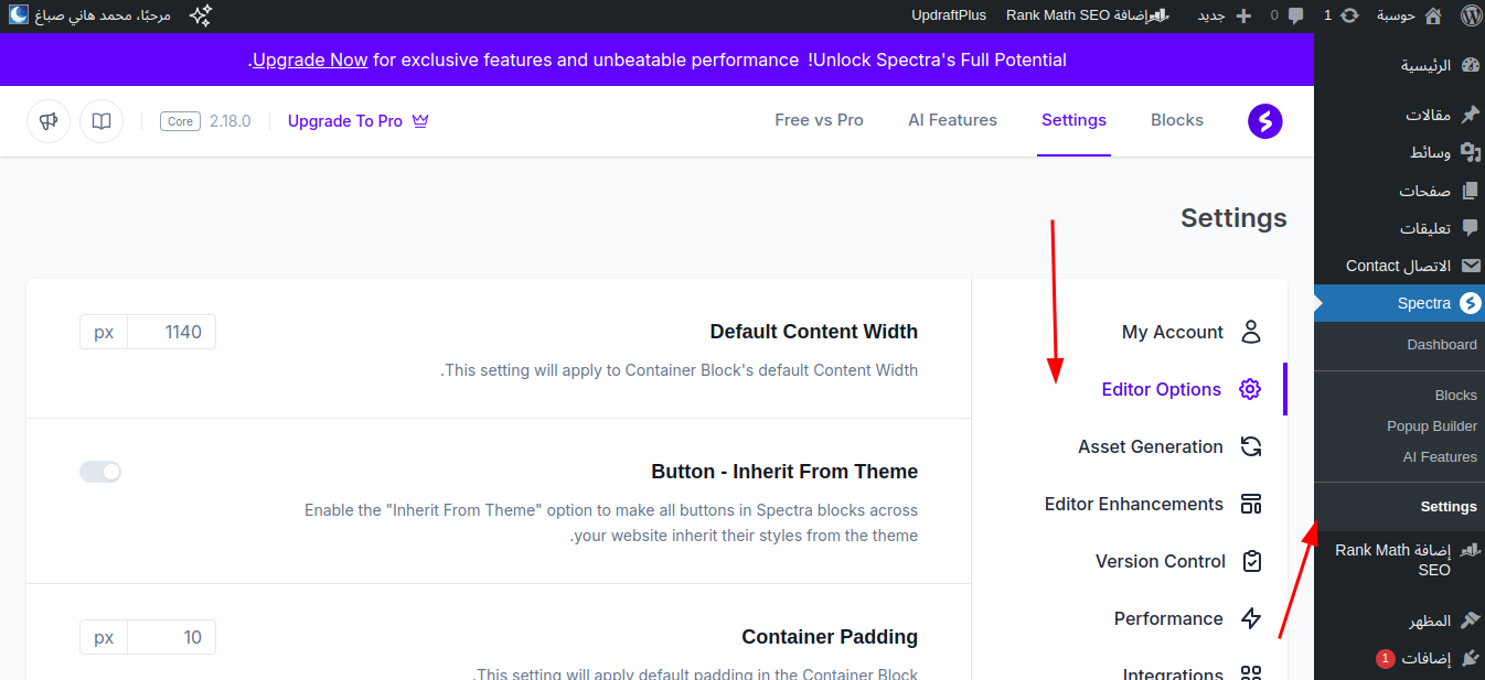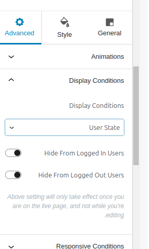 يمكنك التحكم بكل إعدادات وحدات إضافة Spectra من هذا الشريط، ومن أكثر الإعدادات التي تعجبني هو أنه يمكنك تحديد من تظهر له هذه الوحدة ومن تختفي عنه؛ فيمكنك بهذه الطريقة مثلًا إظهار معلومات معينة للمستخدمين الذين سجلوا الدخول أو إخفاؤها عنهم، أو غير ذلك الكثير من الحالات الشرطية على حسب ما تريد عمله… وكل هذا من إضافة واحدة فقط:
