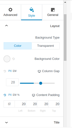 يمكنك التحكم بشكل الوحدة من تبويب style، وتزيينها كيفما شئت لتناسب شكل موقعك: