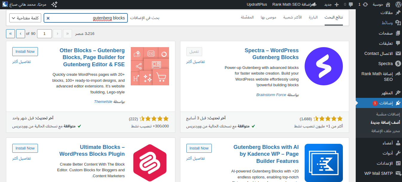 بالطبع إضافة Spectra ليست الإضافة الوحيدة التي تضيف مزايا ووحدات إلى محرر المكوّنات؛ بل هناك إضافات أخرى تفعل نفس الشيء وبها مميزات أخرى. يمكنك البحث عن هذه الإضافات في متجر إضافات ووردبريس عبر البحث عن الكلمة المفتاحية "Gutenberg Blocks" وستجدها، ويمكنك تثبيت أيٍ منها وتجريبها: