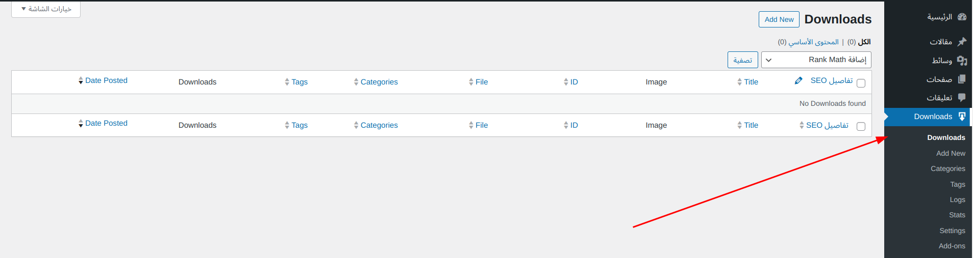 بعد تثبيت الإضافة وتفعيلها على موقعك ستجد قسمًا خاصًا بالتحميلات داخل لوحة تحكم ووردبريس:
