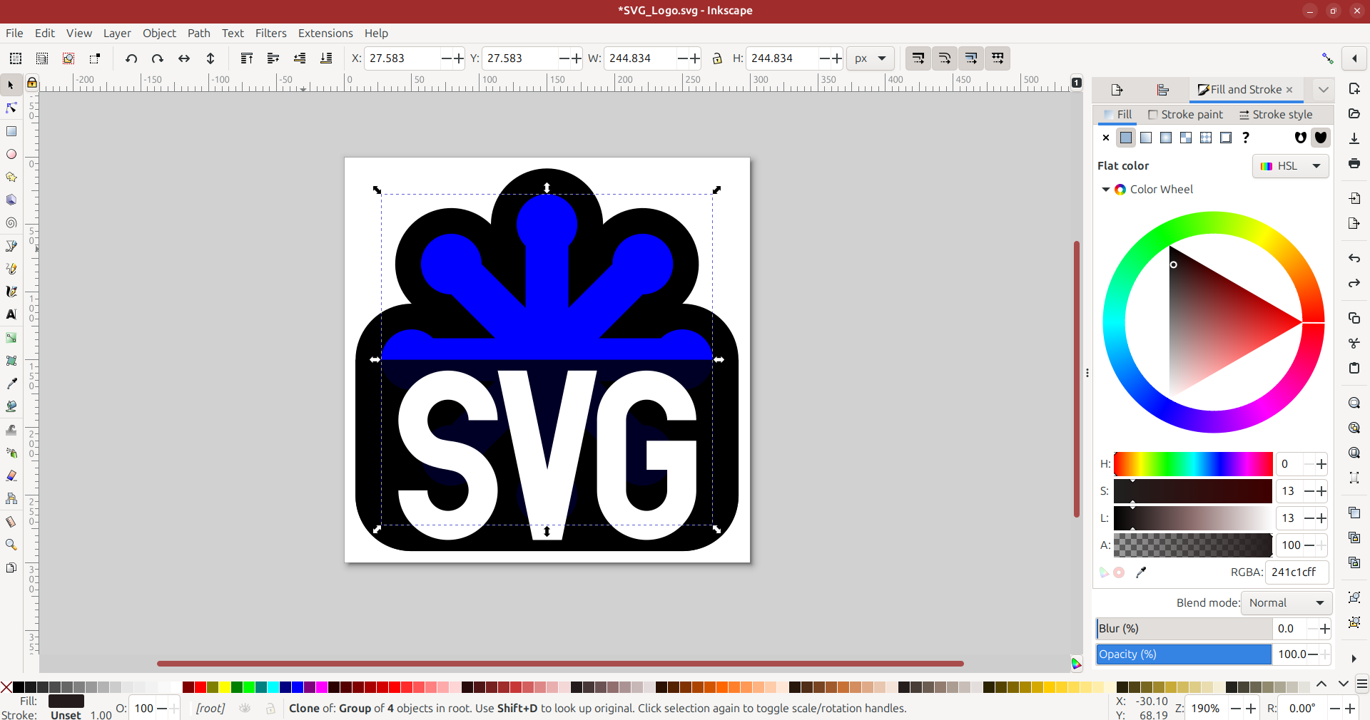 انظر مثلًا كيف يمكنني تعديل تلك الصورة عبر برنامج إنكسكيب، وهو برنامج مجاني ومفتوح المصدر لتعديل صور SVG: