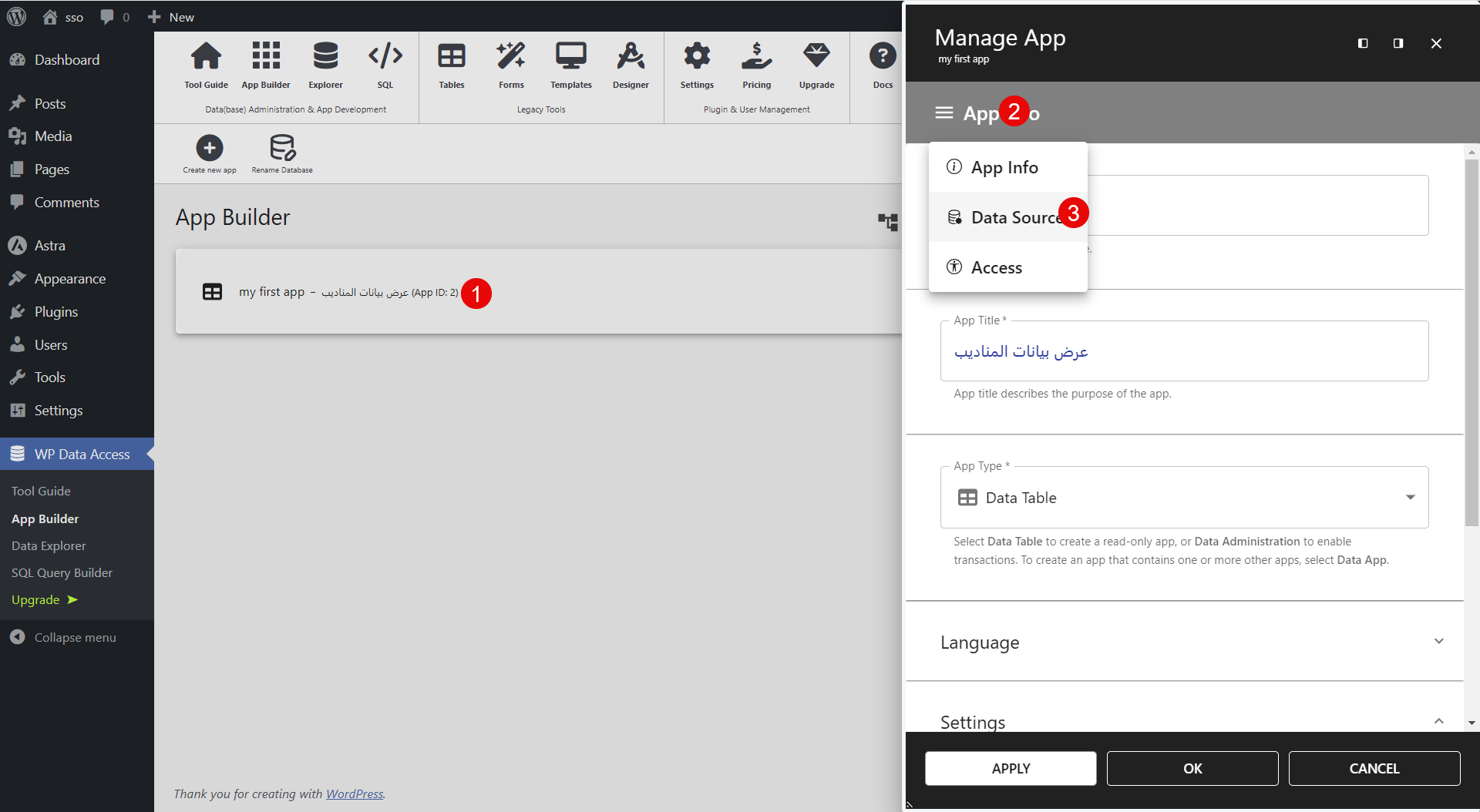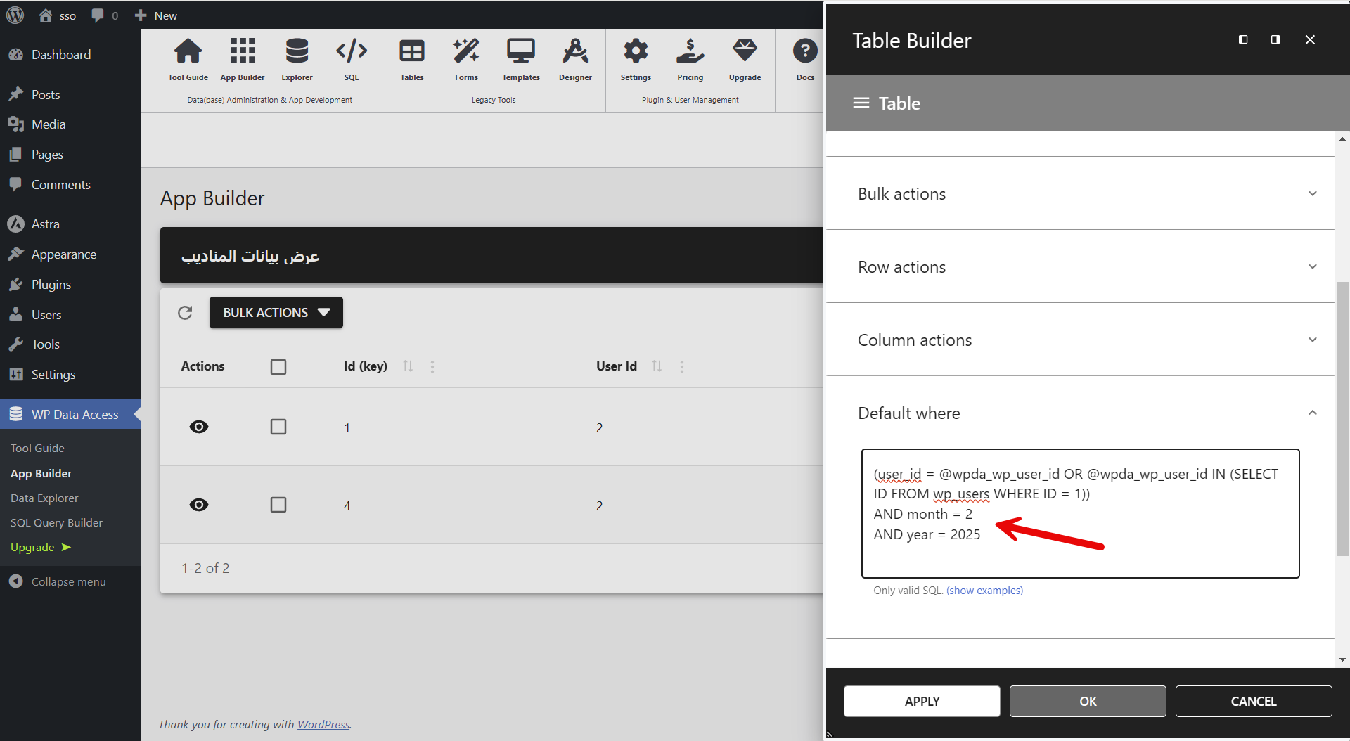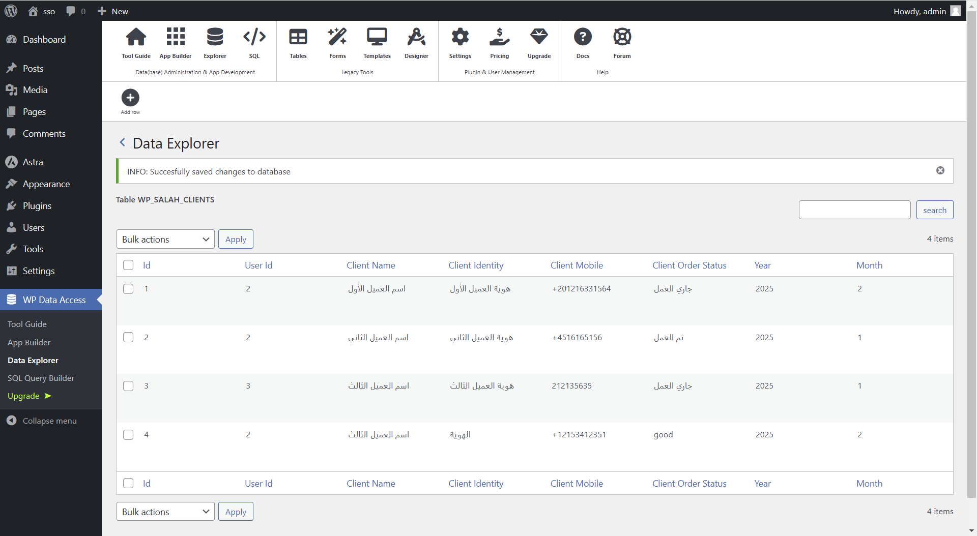 إضافة WP Data Access تبني الجداول مباشرة في قاعدة البيانات، ولذلك أتبع الشرح بتركيز.