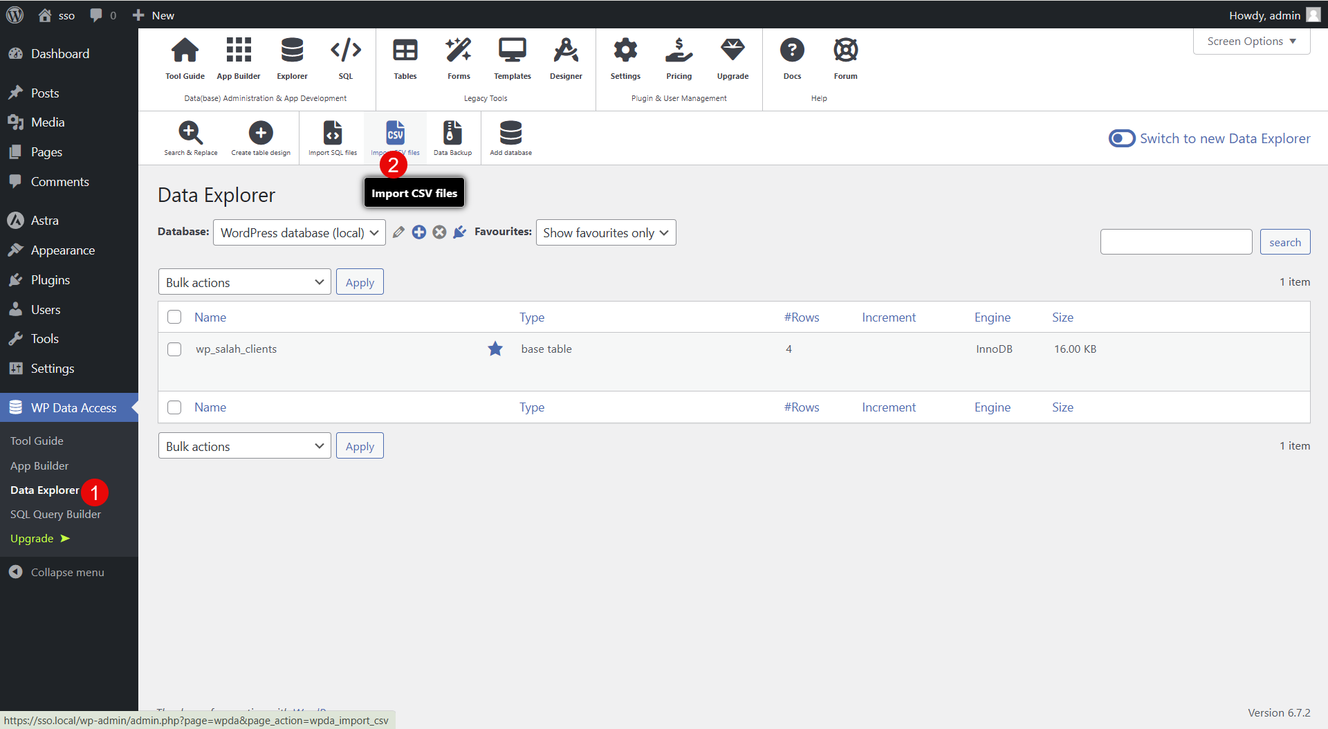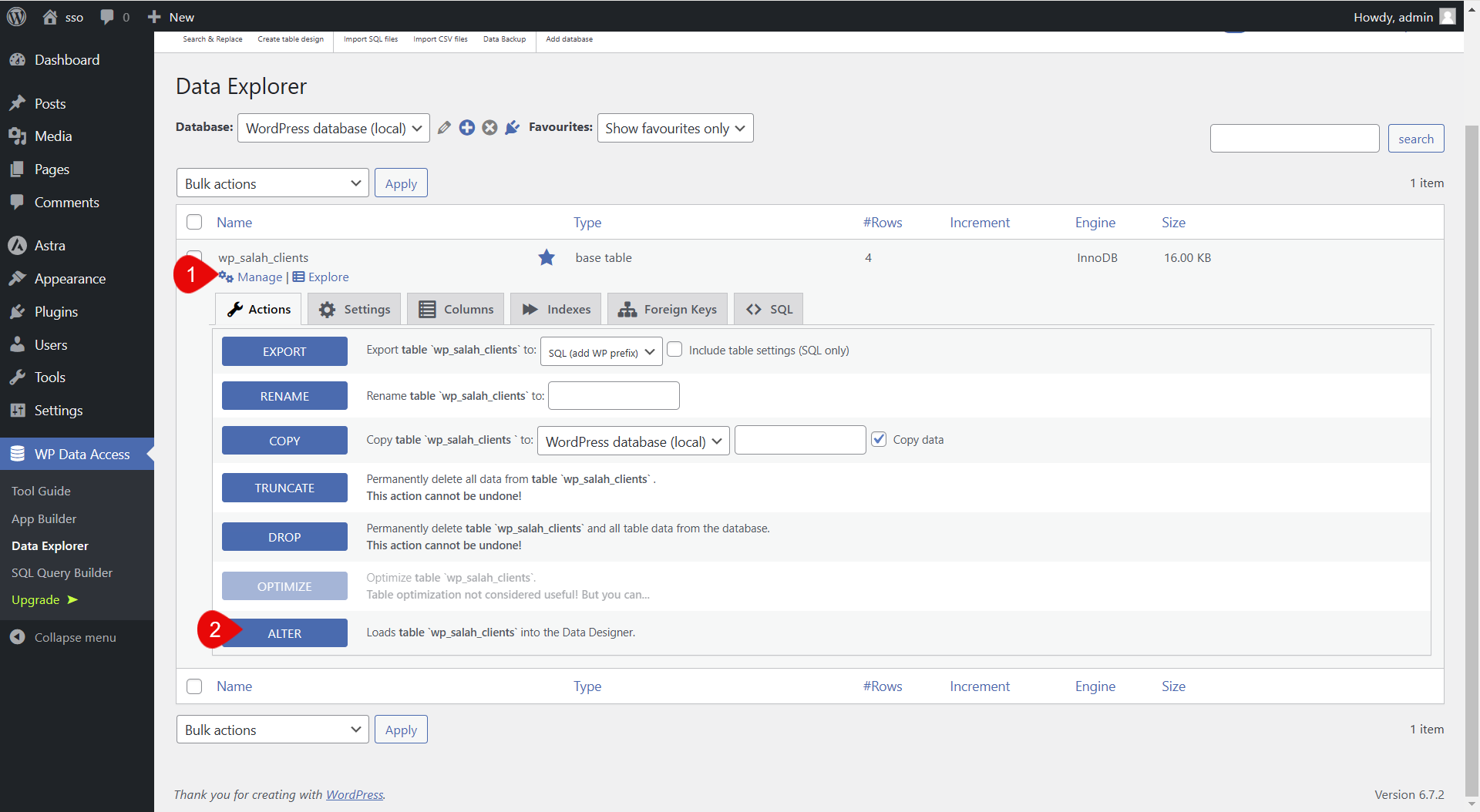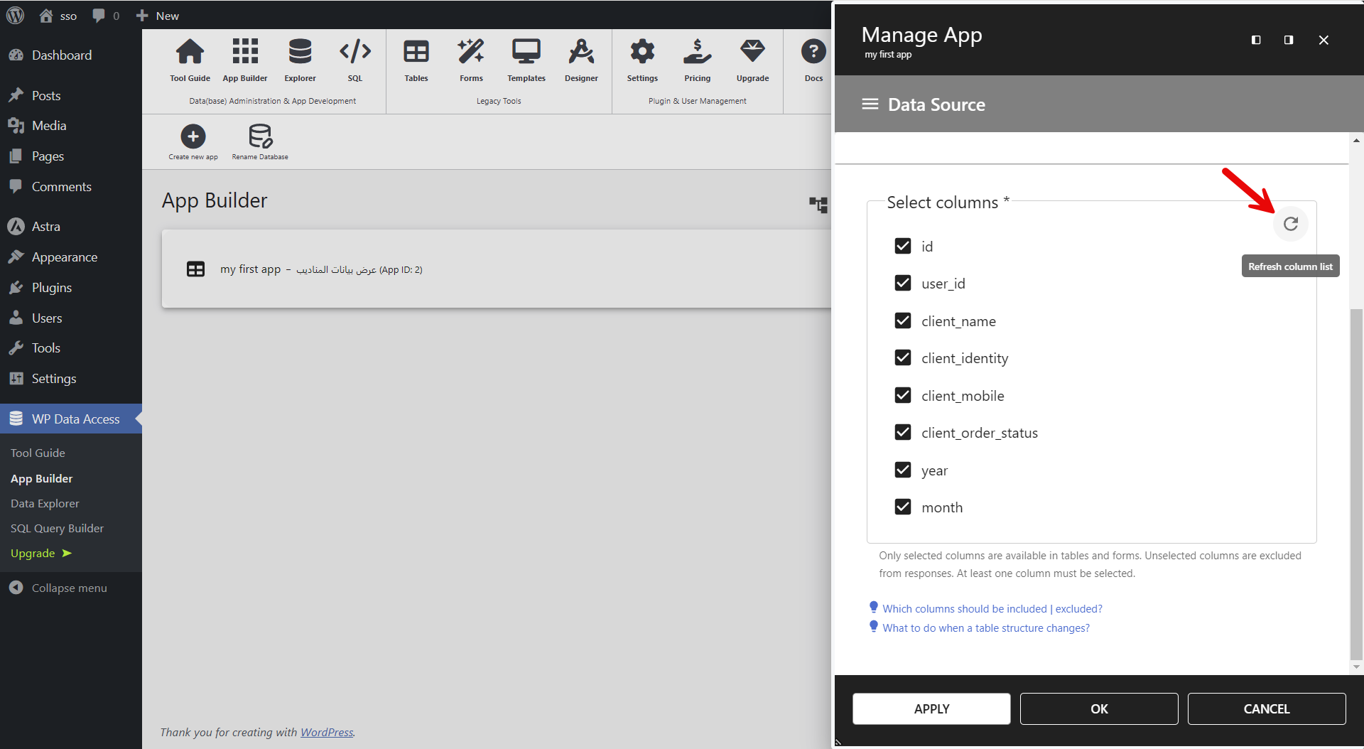 إضافة WP Data Access تبني الجداول مباشرة في قاعدة البيانات، ولذلك أتبع الشرح بتركيز.