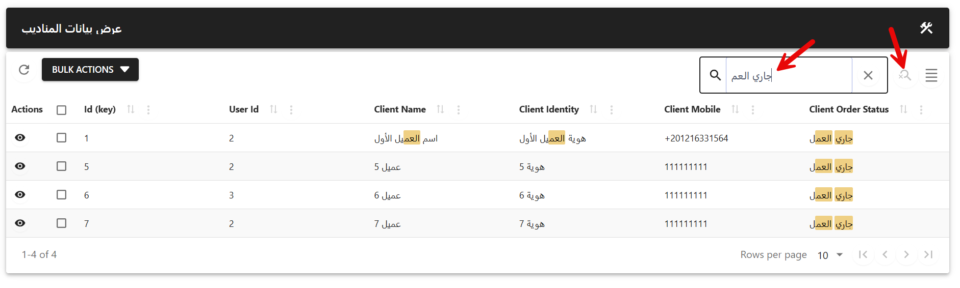 عند استعراض البيانات من قبل الأدمن الذي يحمل المعرف الفريد رقم 1 يتم استعراض كل البيانات.