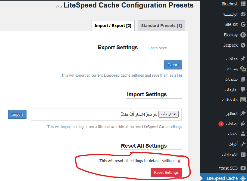 جواد علي ملص أهلا وسلا أخ علي عندي اضافة LiteSpeed Cache ودخلت عملت اعادة ضبط الاعدادات وتم حل المشكلة, لكني لا عرف كيف احذف ذاكرة التخزين المؤقت!! انا نزلت هذه الاضافة لتسريع الموقع ولكنها لا تفي بالغرض لانها غيرت شكل الموقع كما اشرت سابقا, هل يوجد طريقة اخرى لتسريع الموقع دون الاخلال بشكل الموقع؟
