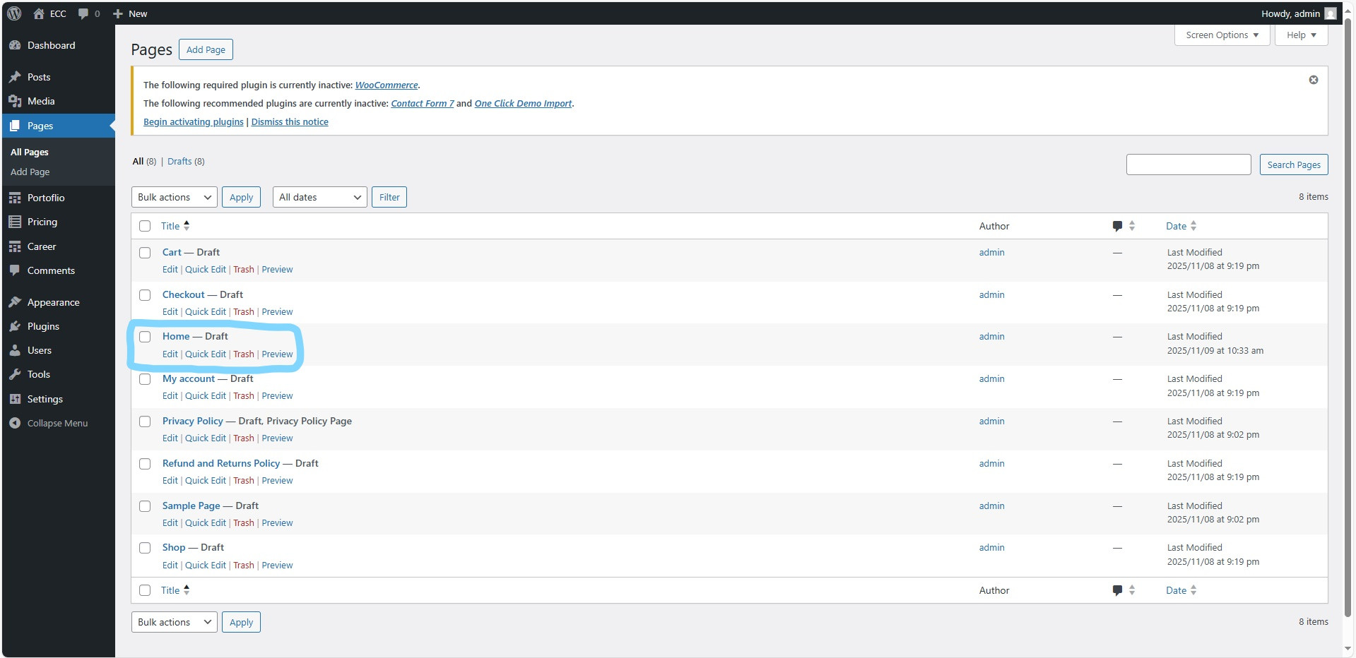 أنا مشكلتي أن الثيم يطلع لي (Home) في النافبار فوق وارفقت الصور سابقاً، لكن ماتظهر في خيارات الصفحات.