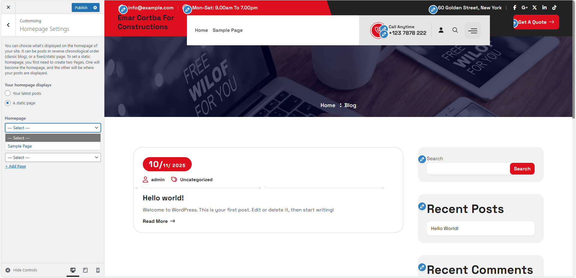 أنا أبي صفحة (Home) تظهر لي علشان أعدل خياراتها إلى الصفحة الرئيسية للثيم مثل الصورة اللي تحت: