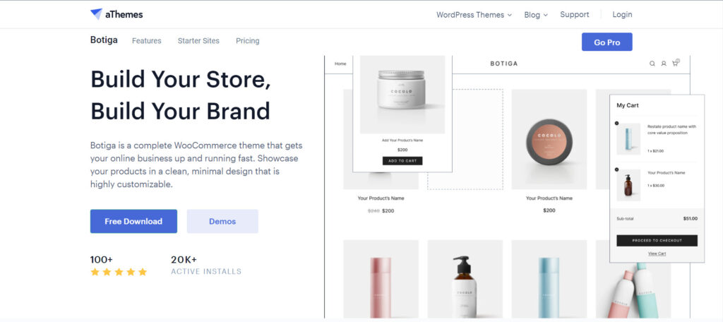 قالب Botiga من القوالب المميزة في إنشاء المتاجر الإلكترونية وهو من تصميم شركة athemes المتخصصة في تصميم قوالب الووردبريس، وتتميز قوالب شركة athemes بالحجم الصغير والسرعة، حيث تصل حجم الصفحات في قالب Botiga إلى 45 كيلو بايت وسرعة القالب في حدود 450 مللي ثانية وهذا معدل ممتاز خصوصًا مع قالب مجاني.