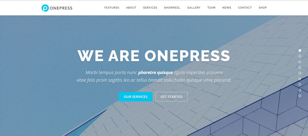 قالب OnePress هو أحد أفضل قوالب ووردبريس العربية المجانية ذات الصفحة الواحدة ويتناسب مع أغلب احتياجات الصفحات الواحدة على سبيل معرض الأعمال الشخصية أو الشركات وغير ذلك.