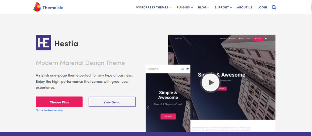 قالب Hestia يعد ضمن الخيارات البارزة التي يمكن أن تعتمد عليها في إنشاء موقع إلكتروني ووردبريس بصفحة واحدة ومن من تصميم شركة Themeisle وهي أحد أشهر الشركات في تصميم قوالب الووردبريس وهي المسئولة عن تصميم قالب Neve السابق أيضًا، لذلك Hestia يجمع أغلب مميزات قالب Neve ويعد المنافس الأكبر له.